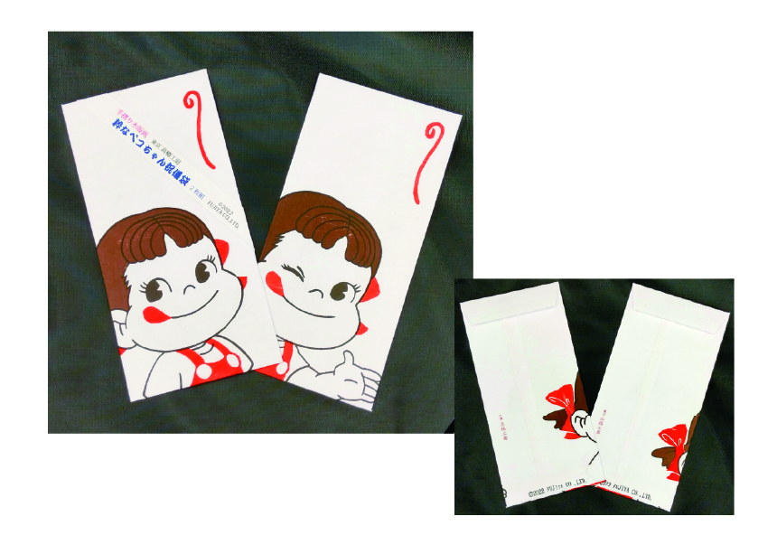 江戸の伝統工芸 手刷り木版画のペコちゃんがご祝儀袋になりました!